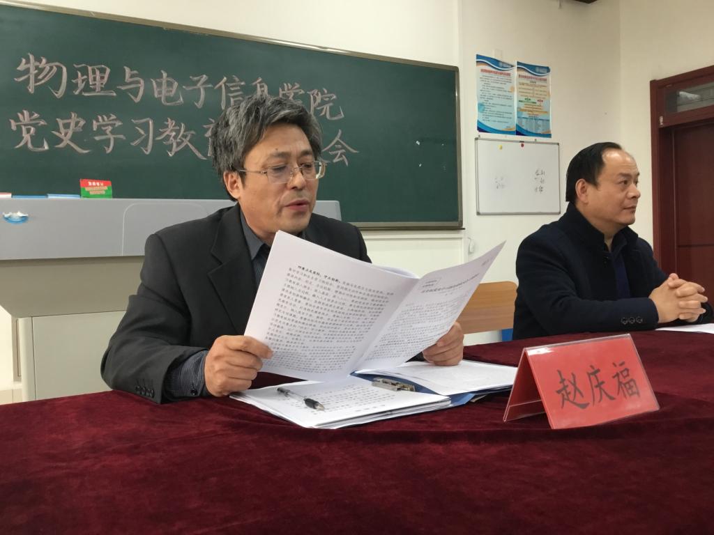 党史学习教育大会上,赵书记首先宣读了习近平总书记讲话重要内容,然后指出物电学院要把党史学习教育任务置于突出位置,压紧压实责任,树立正确党史观,创新方式方法,切实增强开展党史学习教育。最后刘院长进行总结发言,希望以党史学习教育为契机,引导广大物电学院师生坚定信仰,强化思想道德建设,营造良好学习环境,切实把核心价值观渗透到日常的工作学习中。