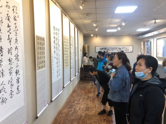 参观过程中,大家秩序井然,在一幅幅作品前认真欣赏细细品味,并纷纷拿出手机拍照留念。