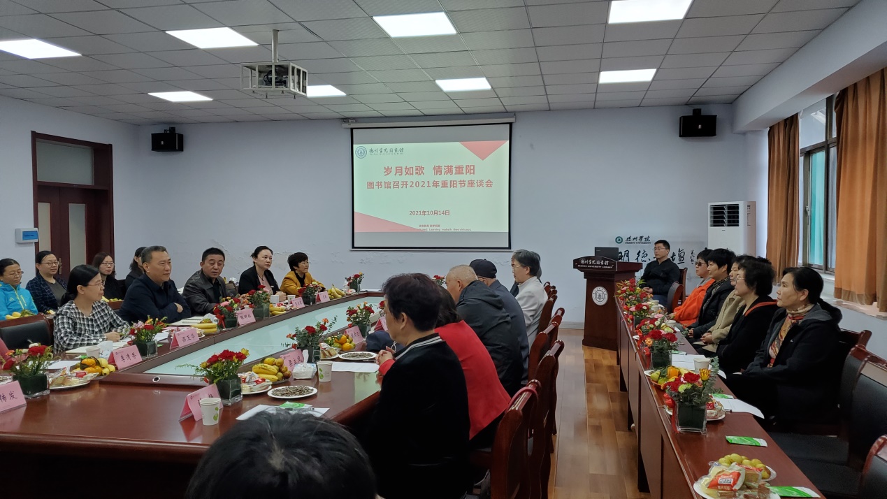 金秋十月,丹桂飘香。在农历的九月初九重阳节到来之际,图书馆邀请退休老同志参加“岁月如歌•情满重阳”座谈活动,共同庆祝2021年重阳节。