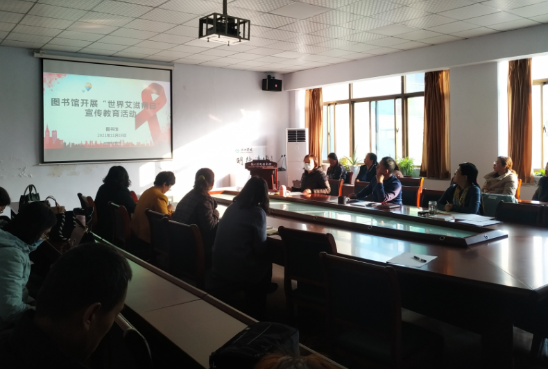 根据《教育部办公厅关于做好2021年“世界艾滋病日”宣传教育活动的通知》及学校工作安排,11月16日在第34个“世界艾滋病日”即将到来之际,图书馆在一楼会议室开展主题为“生命至上 终结艾滋 健康平等”“世界艾滋病日”宣传教育活动。