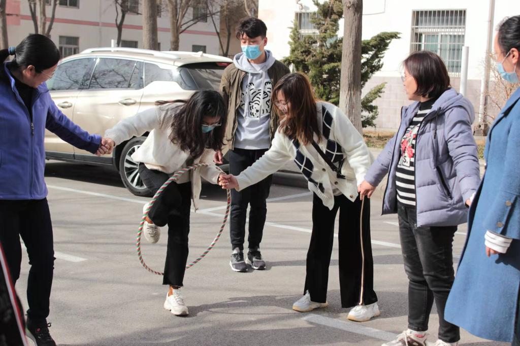 此次活动所有教职工分为四组,分别进行游戏,游戏由“坐地起身”“逃脱困境”“一圈到底”和“四通八达”四部分组成,用时最短组获胜。在活动中,各位老师充分发扬团结协作、积极向上的精神,全身心投入到比赛中。整个比赛过程紧张激烈又趣味横生,现场热闹非凡,气氛活跃。
