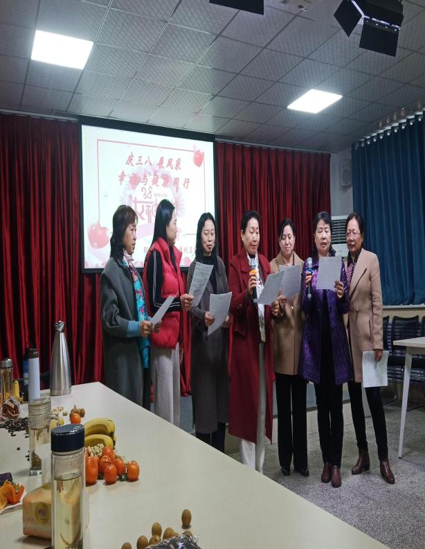 职业教育学院党委书记牟光波同志来到活动现场,为女同胞们送来了节日的祝福。牟书记表示,一直以来,职教院的发展离不开女同胞们的辛勤付出,作为女性,不仅是家庭幸福的守护者,在工作中也是职教院的“半边天”,为职教院的发展作出了不可或缺的贡献。 活动首先组织了妇女健康讲座,接着开展了丰富多彩的文艺节目,有诗朗诵、民歌合唱,京剧、舞蹈、猜词游戏,整个活动开的别开生面,营造了良好的节日氛围,让女教职工度过了一个欢快祥和的节日。
