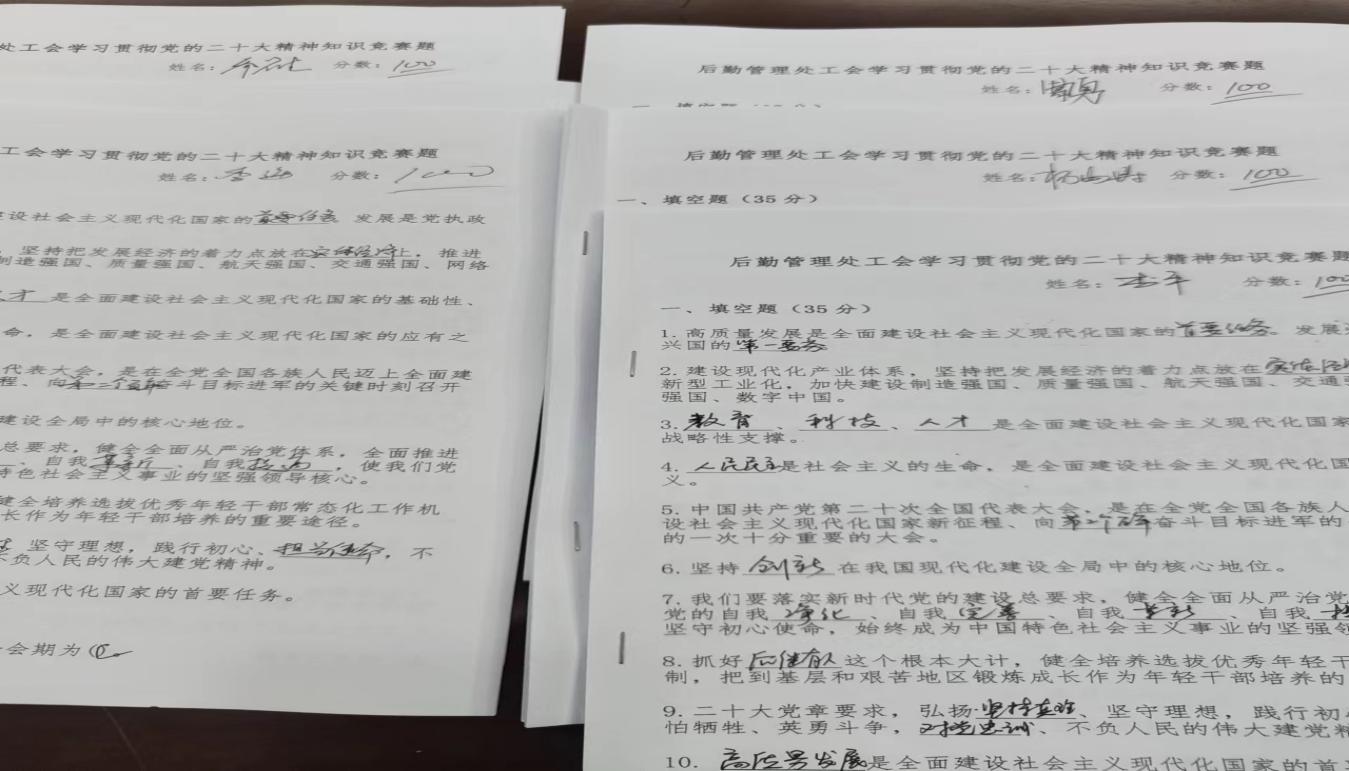 为深入学习宣传贯彻党的二十大精神,12月13日,后勤管理处91精品国产情侣高潮对白开展“学习贯彻党的二十大精神”知识竞赛活动。