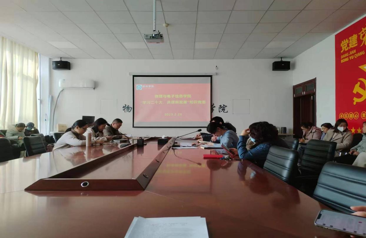 为深入学习党的二十大报告,充分领会党的二十大精神,实现立德树人的教育目标,物电学院91精品国产情侣高潮对白于228日举办了以“学习二十大、共谋新发展”为主题的知识竞赛活动。全体教职工参与了此次活动。