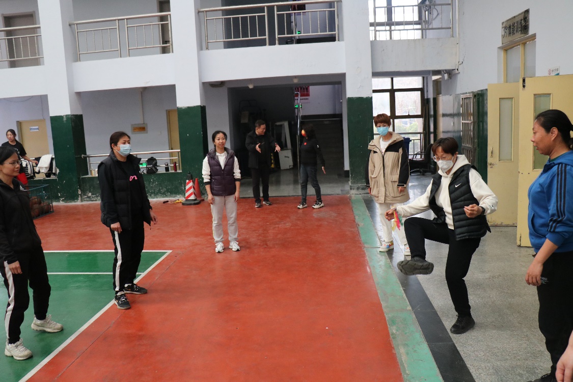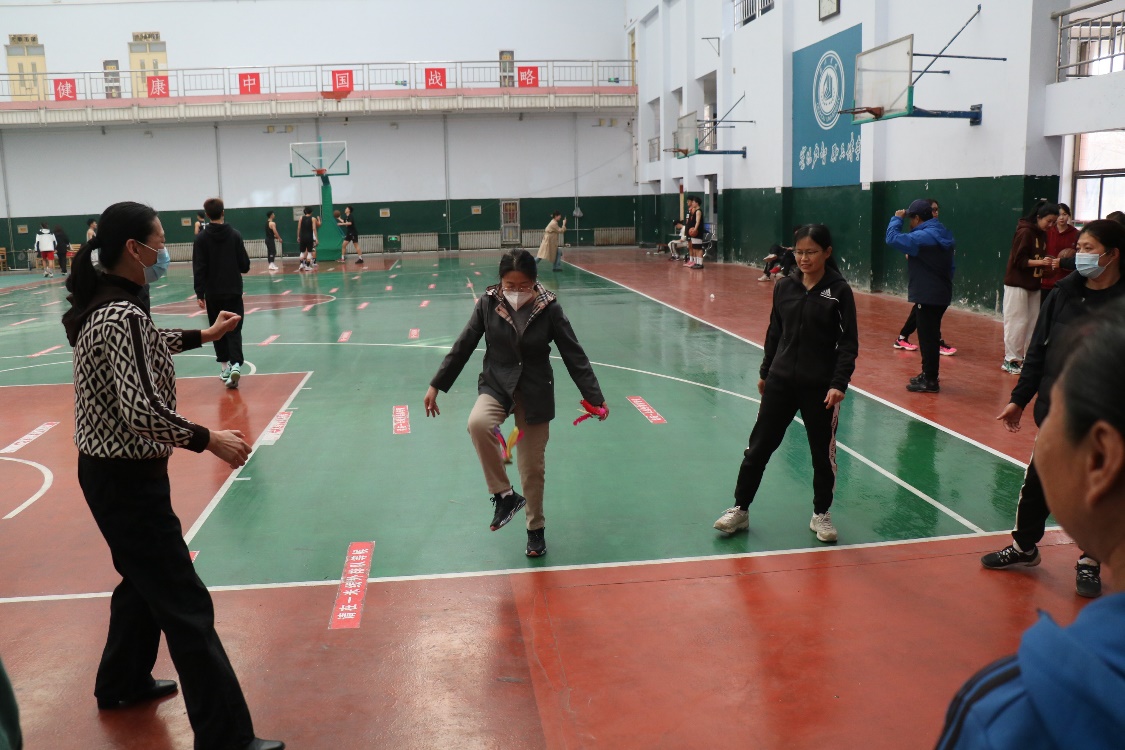 本次活动以趣味运动的形式开展。热身活动后,老师们可以自由选择参加踢键子、跳绳、乒乓球等项目。在裁判员一声声哨响中,大家专注谨慎,轻盈灵活,每个人脸上都洋溢着幸福的笑容,体育馆中,不时响起一阵阵热烈的欢呼声。