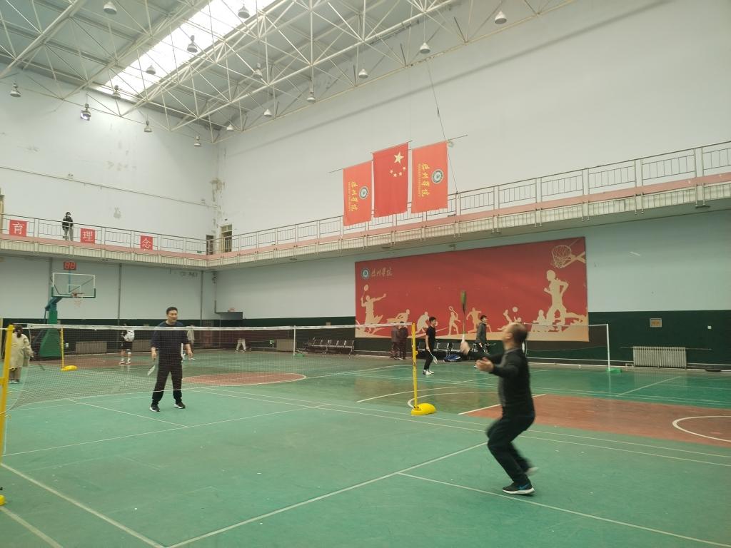 4月13日,学工部91精品国产情侣高潮对白在学校体育馆一楼组织全体会员进行羽毛球比赛。