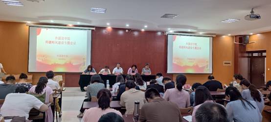 9月5日,外国语学院在博文楼328报告厅召开师德师风建设专题会议。会议由外国语学院主要负责人主持,全体教职工参加。