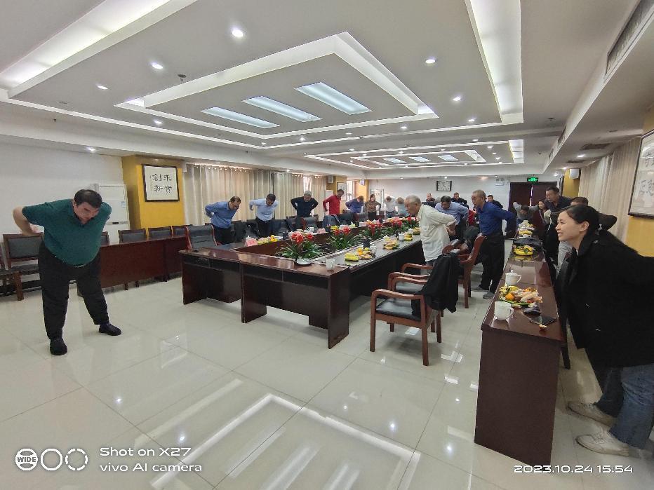 后勤处退休职工、按摩专家张文会老师为大家作了“腰部保健操”讲座,大家跟随张老师的动作示范一起操练,学习并掌握了腰部保健的知识和技能。随后后勤处职工为在座老同志献唱一曲,把座谈会推向高潮。