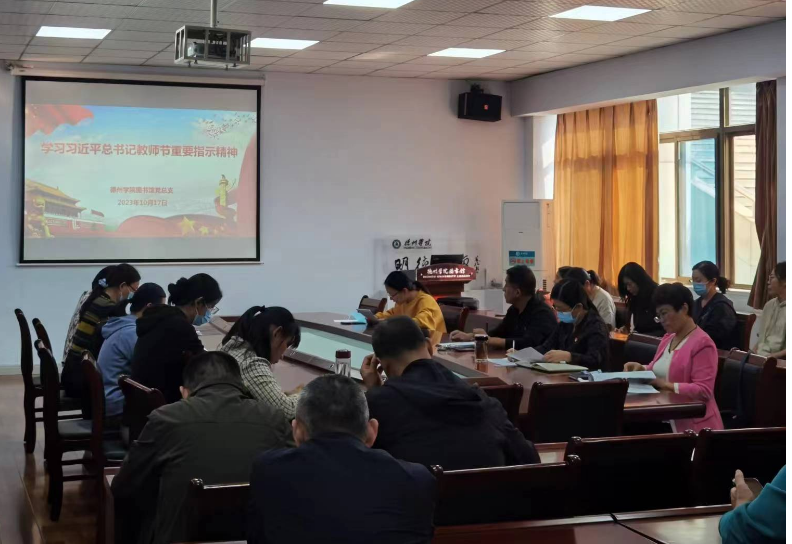 为深入学习贯彻习近平总书记教师节重要指示精神,大力弘扬教育家精神,10月17日下午,图书馆在一楼会议室组织全体馆员认真学习习近平总书记教师节重要指示精神。