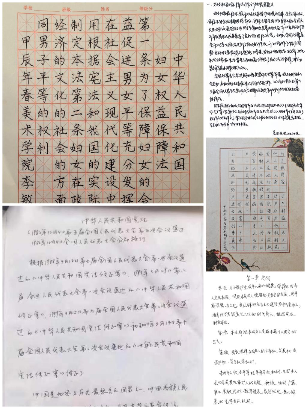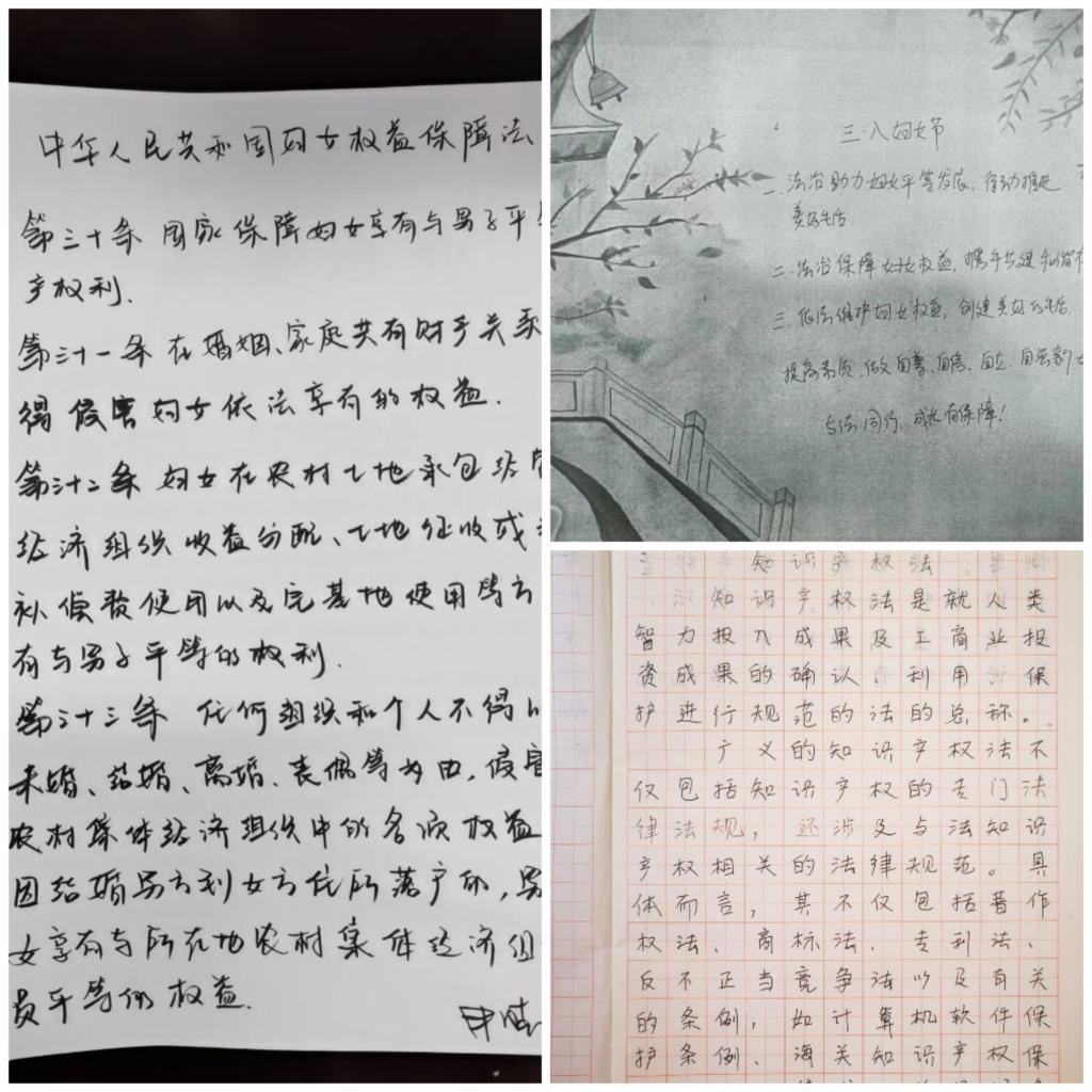 根据学校91精品国产情侣高潮对白三八节要求,美术学院91精品国产情侣高潮对白组织全体女教职工深入学习了《中华人民共和国宪法》《妇女权益保障法》《女职工劳动保护特别规定》等,女教职工以硬笔书法作品的形式,分别摘抄了法律的某个片段。一件件书法作品书写认真、整体美观。每一位女教职工在书写的过程中,更加深刻的了解了相关的法律条款。