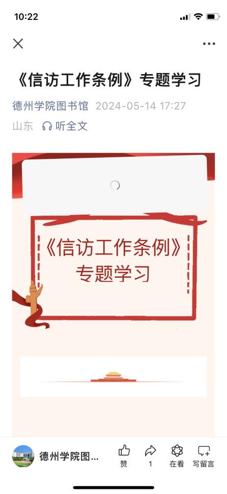 活动中,图书馆通过线上线下相结合的方式组织开展形式多样的学习宣传活动。一是利用政治理论学习组织馆员开展集体学习,认真观看中共中央国务院印发的《信访工作条例》宣传片及重点内容解读;二是利用微信公众号开展条例宣传活动,制作宣传小视频;三是组织馆员线上开展条例自学活动。