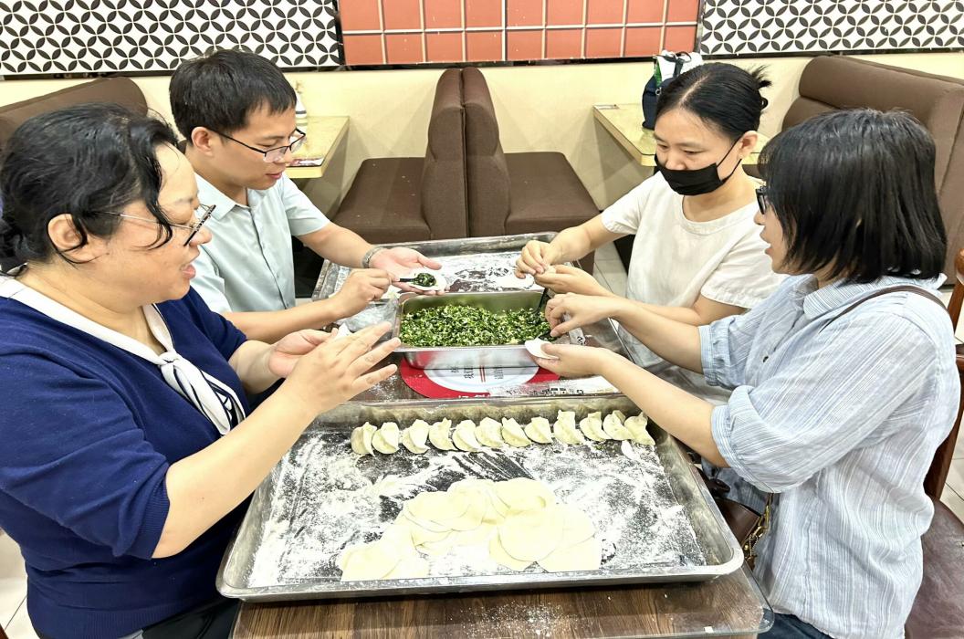 为庆祝第40个教师节的到来,进一步推进师德师风建设的深入进行,同时增进师生的感情和交流、丰富教职工业余生活,以及给2024级新生送去家的温暖和关怀,物电学院于9月8日下午在学校教工餐厅进行了师生同庆教师节集体包水饺活动,除出差在外的几位老师外,物电学院大部分教职工和部分学生参加了此次活动。