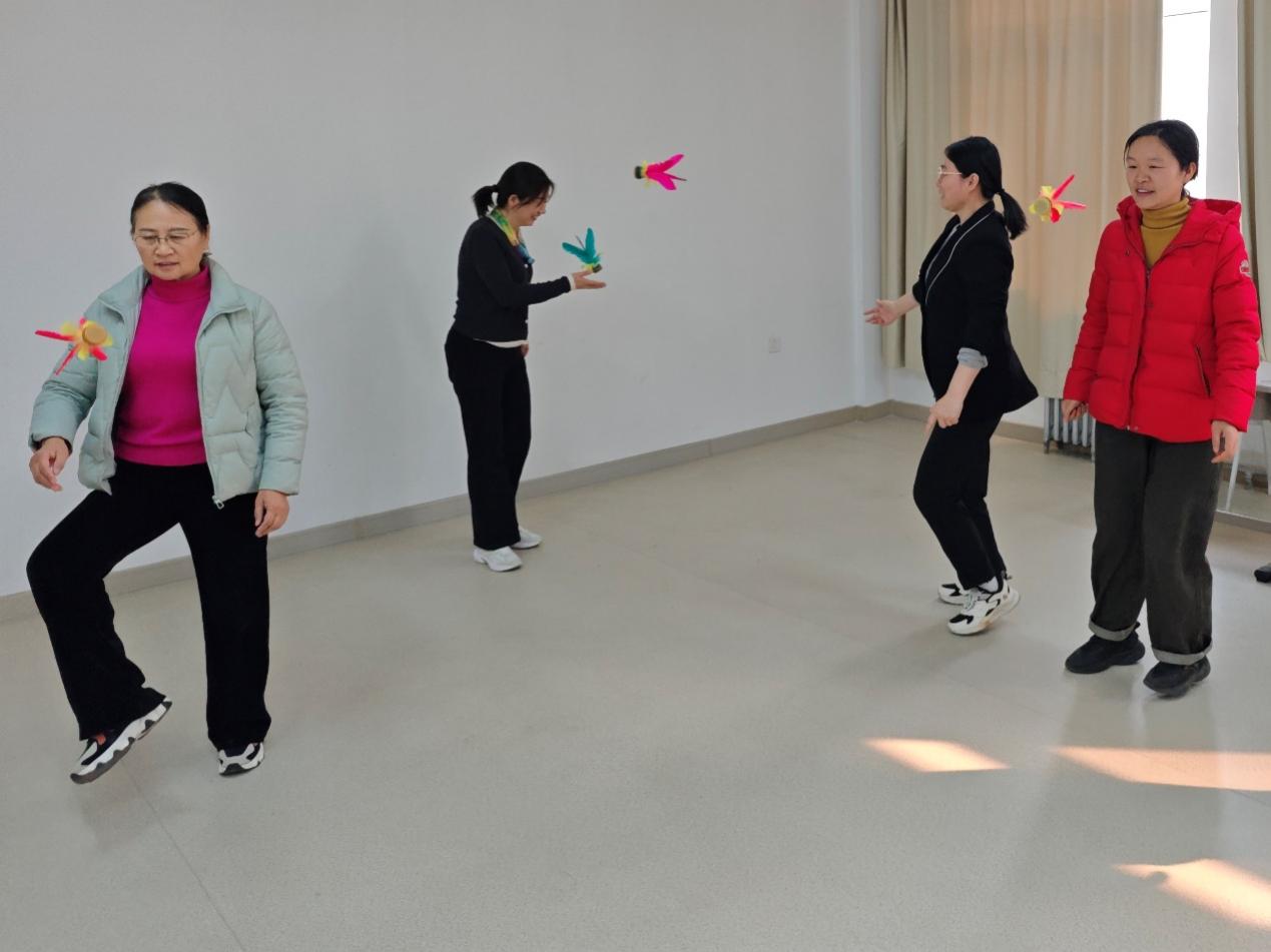 活动当日,健行楼405教室充满欢声笑语。尽管教室空间有限,但女教师们的热情丝毫不受影响。活动开始前,大家早早到场,相互交流、热身,现场氛围轻松愉悦。随着一声令下,踢毽子活动正式拉开帷幕。只见五彩的毽子在老师们的脚尖上下翻飞,犹如灵动的精灵。有的老师技艺娴熟,动作行云流水,连续踢上数十个不在话下,精湛的技艺赢得了在场同事们的阵阵喝彩;有的老师虽初次尝试,但凭借着积极参与的热情,在一次次的尝试中逐渐掌握技巧,现场其乐融融。