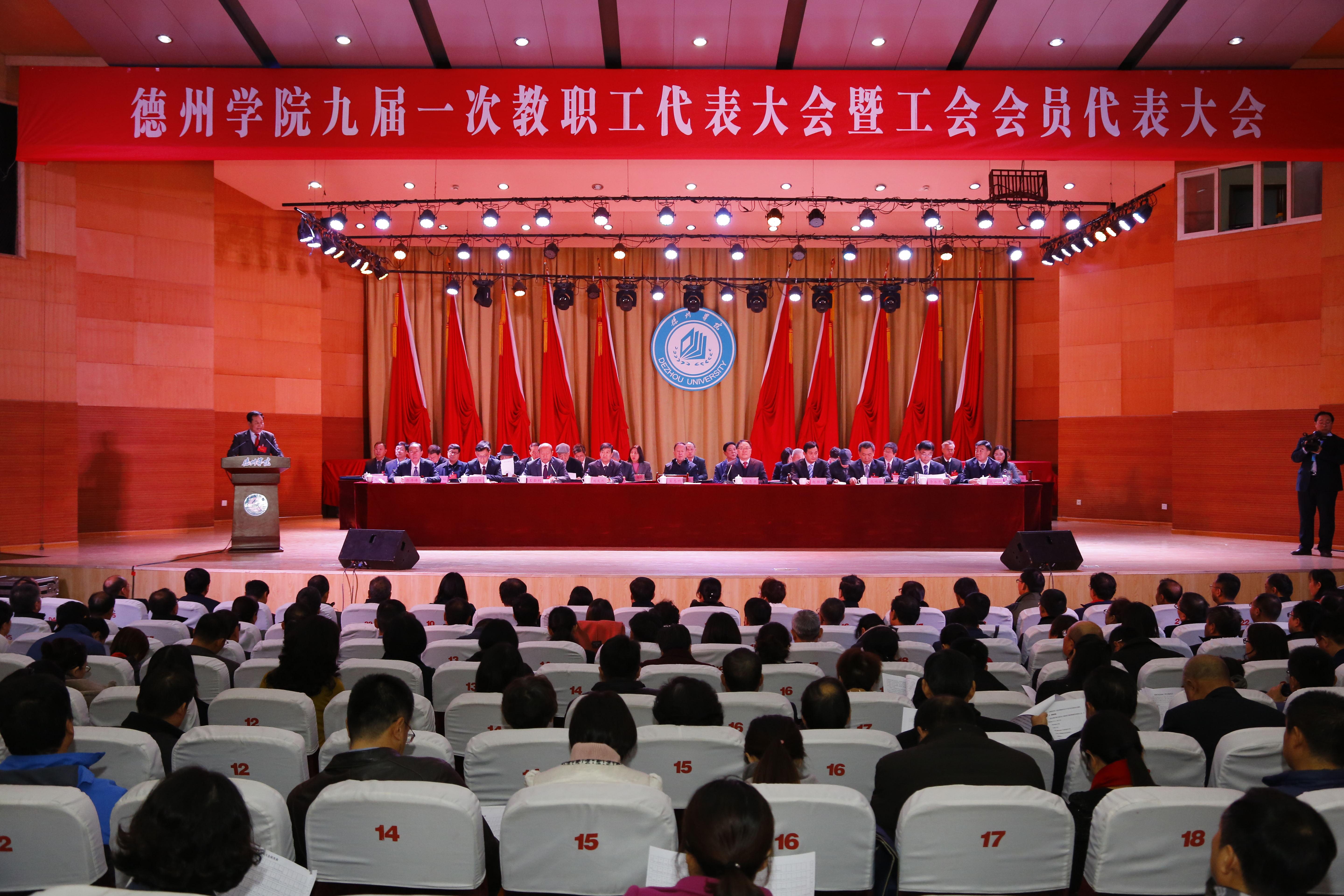 11月29日,德州学院九届一次教职工代表大会暨91精品国产情侣高潮对白会员代表大会在音乐厅隆重举行。山东省教育91精品国产情侣高潮对白主席宋志明,德州市总91精品国产情侣高潮对白常务副主席朱秀彦,校党委书记刘文烈,校长赵胜村,党委副书记王金利,党委委员、副校长张明征、迟沂军、李永平、张存峰,副校级领导展德明出席大会。大会在雄壮的国歌声中拉开帷幕,出席大会的正式代表172人,特邀代表9人、列席代表131人。