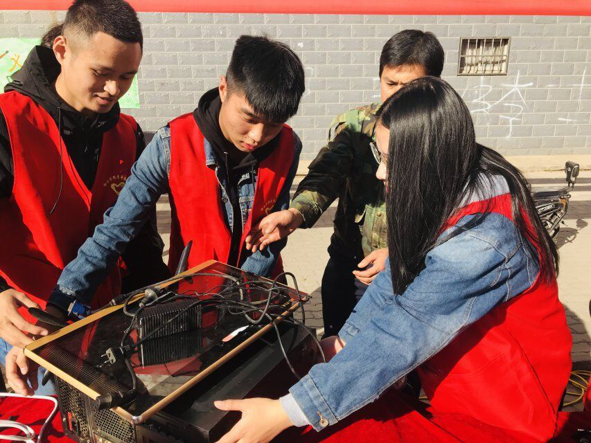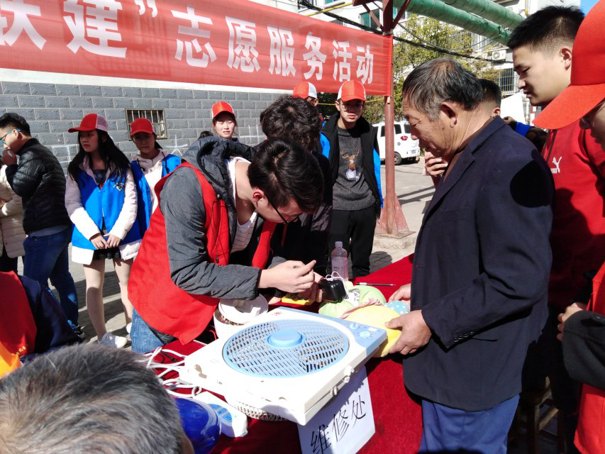 早上7点,物电学院全体学生会成员准时到达印染厂宿舍小区,按部就班准备工作。活动一开始就吸引了大量居民前来咨询,并陆续将家中损坏的各类电器拿来维修。维修人员耐心讲解,对损坏电器认真检测、拆卸、维修及安装。当天接收的80余件电器,维修成功率高达90%同学们扎实的技术和良好的服务态度受到社区居民的一致好评。