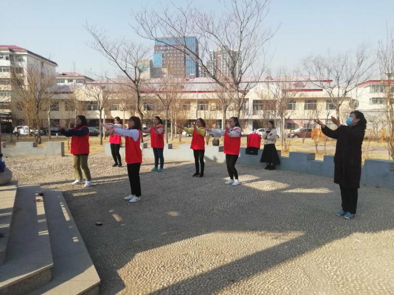 马院志愿者在监狱宿舍广场开展“养生有操,健康同行”志愿活动