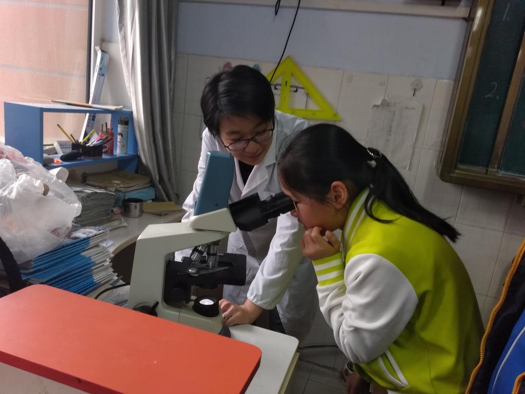 讲座结束后,孩子们依次观察了试管中的大肠杆菌菌落,每个学生都观察得特别仔细,他们不时兴奋地分享着自己的发现;随后,孩子们又通过显微镜观察大肠杆菌,只见他们满怀激动地走到显微镜前,在孟繁露博士的指导下,踮起脚尖,闭上左眼,把右眼睁地大大的,往镜筒里张望。“哇!好神奇呀!我看到了黑色小斑点,就像一串串省略号。”孩子们情不自禁地赞叹到。活动现场,两位老师一边引导孩子们正确观察,一边耐心地回答问题,忙得不亦乐乎。此次活动激发了孩子们对科学的探索,开拓了他们的思维。活动结束后,孩子们纷纷表示长大后要当一名科学家。