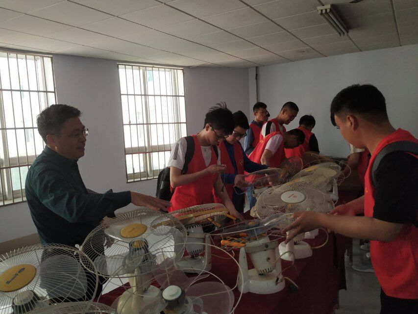 活动现场,各专业的同学纷纷拿来损坏的电器,维修的同学们一丝不苟操作,寻找电器损坏的原因,协作配合、换件维修,赵书记及教师志愿者积极进行指导,经过不懈努力,所接收的小电器均顺利完成维修。