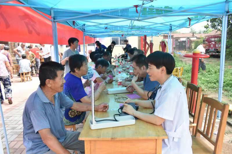 另一组教工志愿者的服务地点在雷集村村委会小广场,医药与护理学院和后勤处的专家大夫为村民进行义诊,信息管理学院和物理与电子信息学院的师生为村民维修电脑和家用电器,每位志愿者都是热情高涨、不惧酷暑,耐心细致地为广大村民做好服务。
