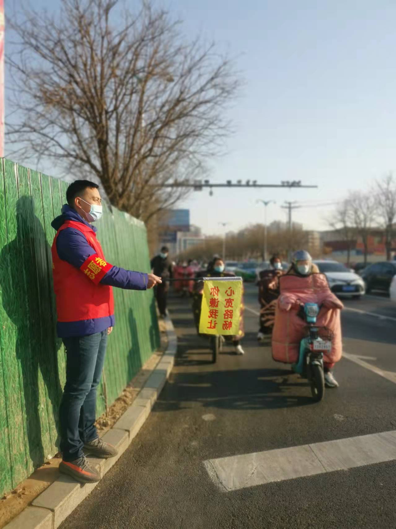 早晨7点,初春的风还有些料峭,志愿者们都准时来到路口,大家穿上红马甲,举起小黄旗和小红旗就开始上岗,过往的市民群众也在这些温柔坚定的提醒中,自觉遵守交通秩序。晚高峰时,回家心切的市民常常无意识地犯一些小错误,志愿者们也忙碌起来,不停地过去解释提醒。天色渐晚了下来,路上的行人和车辆也少了,志愿者们也踏上回家的路。
