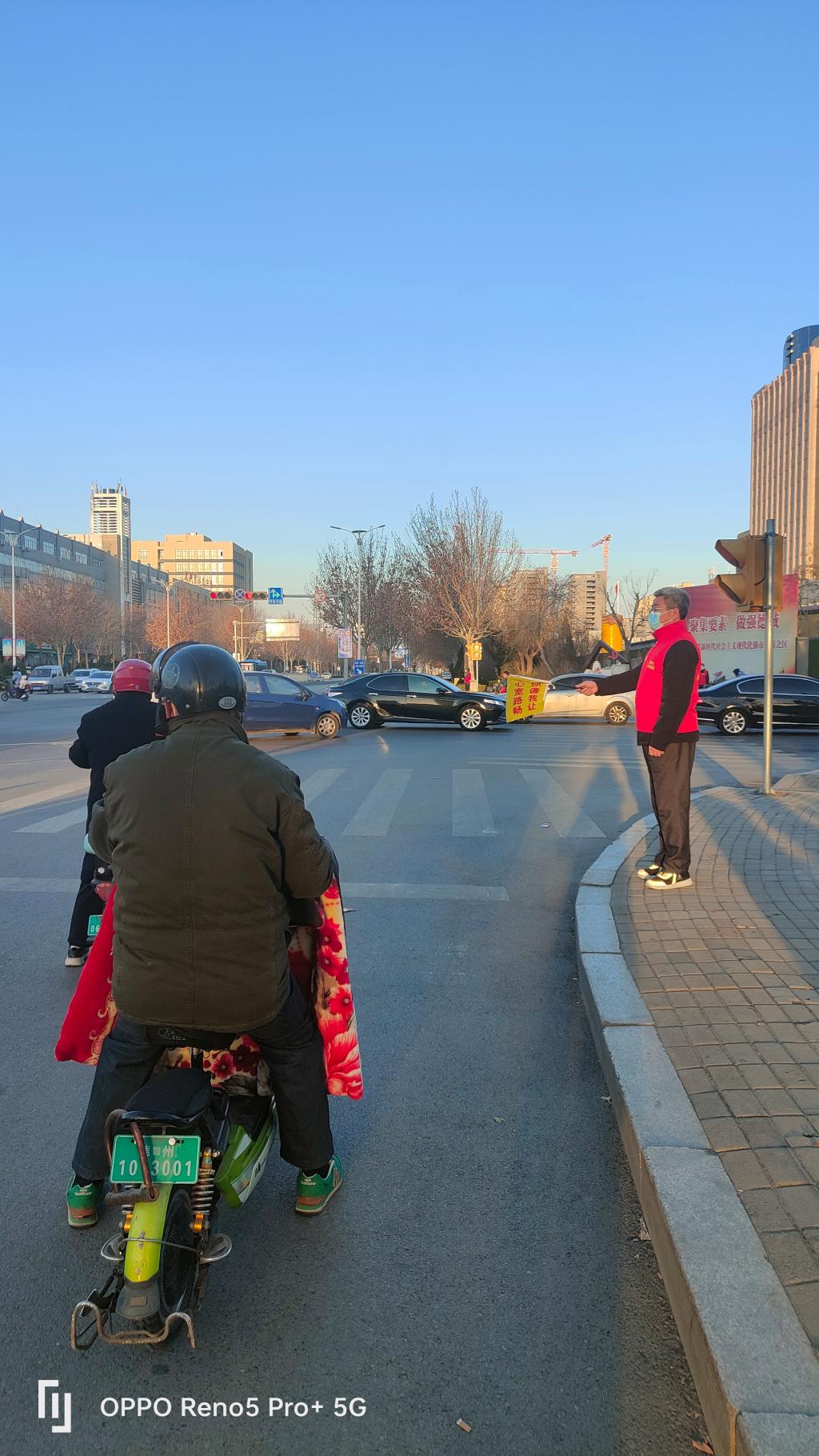 尽管早春早晚的寒风有些瑟瑟,但志愿者仍然坚守岗位,后勤处的8位党员老师身穿醒目的志愿者服装,早早来到执勤地点。德兴北大道与大学西路交叉口每日的7:30—8:30和17:30—18:30是交通出行的高峰期,志愿者们两人一组分守在四个方向路口,协助交警劝阻非机动车和行人闯红灯、越线停车、逆向行驶等不文明行为,维持交通秩序,很好地完成了交通志愿服务。