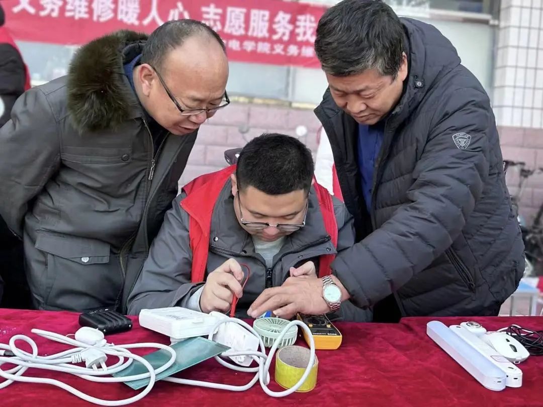 维修活动现场,师生志愿者冒着严寒们热情接待、认真倾听每一位需要帮助的教职工和同学的问题和需求,并提供专业的咨询和维修服务。志愿者们凭借扎实的技术知识和专业的维修技能,对各种家用小电器出现的故障进行维修处理,赢得了教职工和同学们的一致好评。