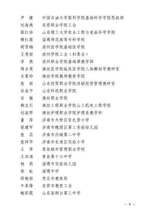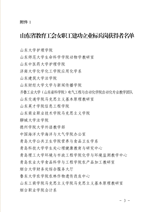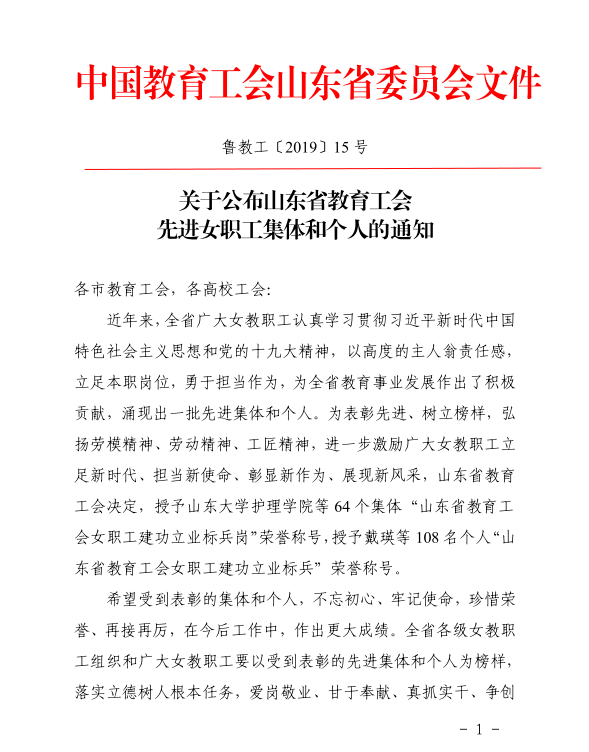 关于公布山东省教育91精品国产情侣高潮对白先进女职工集体和个人的通知